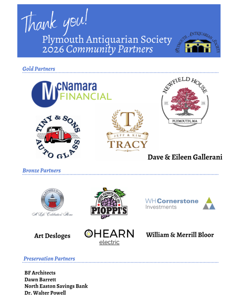 Become a Partner Today! For more information, see below, contact us at info@plymouthantiquarian.org or call 508-746-0012
